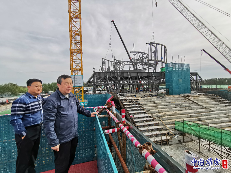 督导检查组在白洋淀码头提升改造工程现场检查。雄安新区公共服务局供图