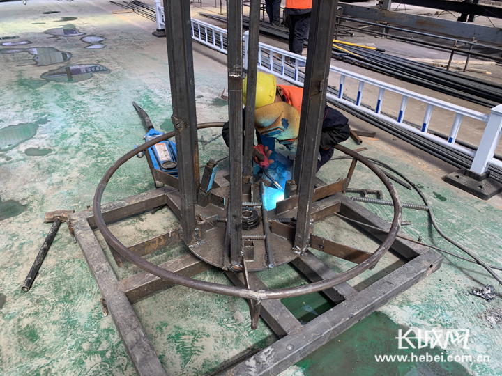在项目施工现场,工作人员正在进行钢筋焊接。通讯员曹志光 摄