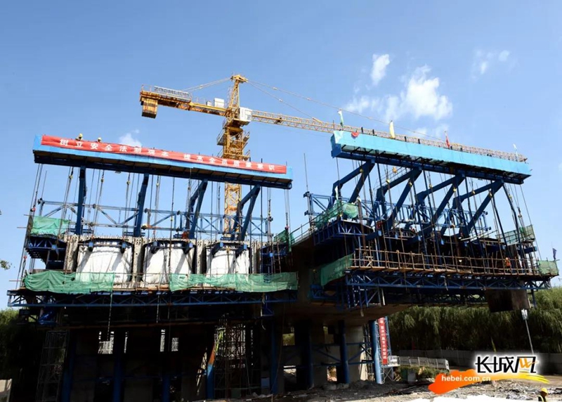 京雄高速施工人员在小清河特大桥进行箱梁悬浇作业。