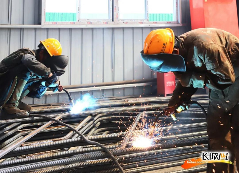 京雄高速施工人员进行预制箱梁钢筋焊接作业。