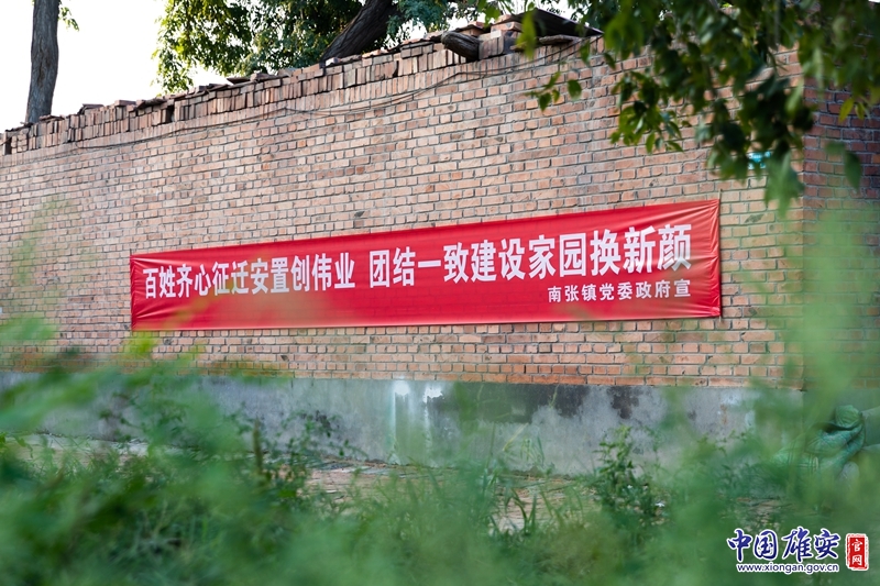 “百姓齐心征迁安置创伟业 团结一致建设家园换新颜”宣传标语。中国雄安官网记者毛鹤然 摄