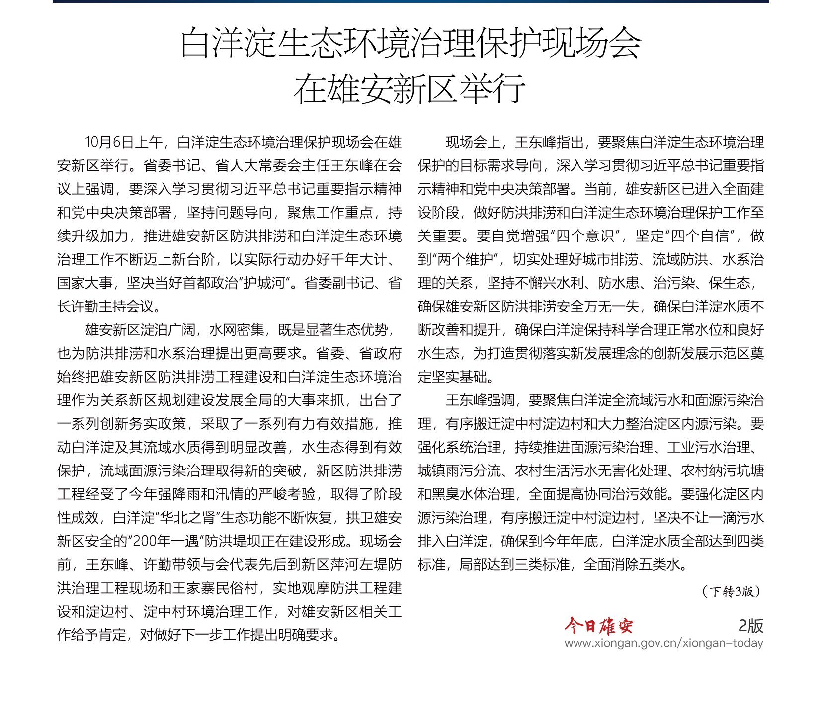 白洋淀生态环境治理保护现场会在雄安新区举行