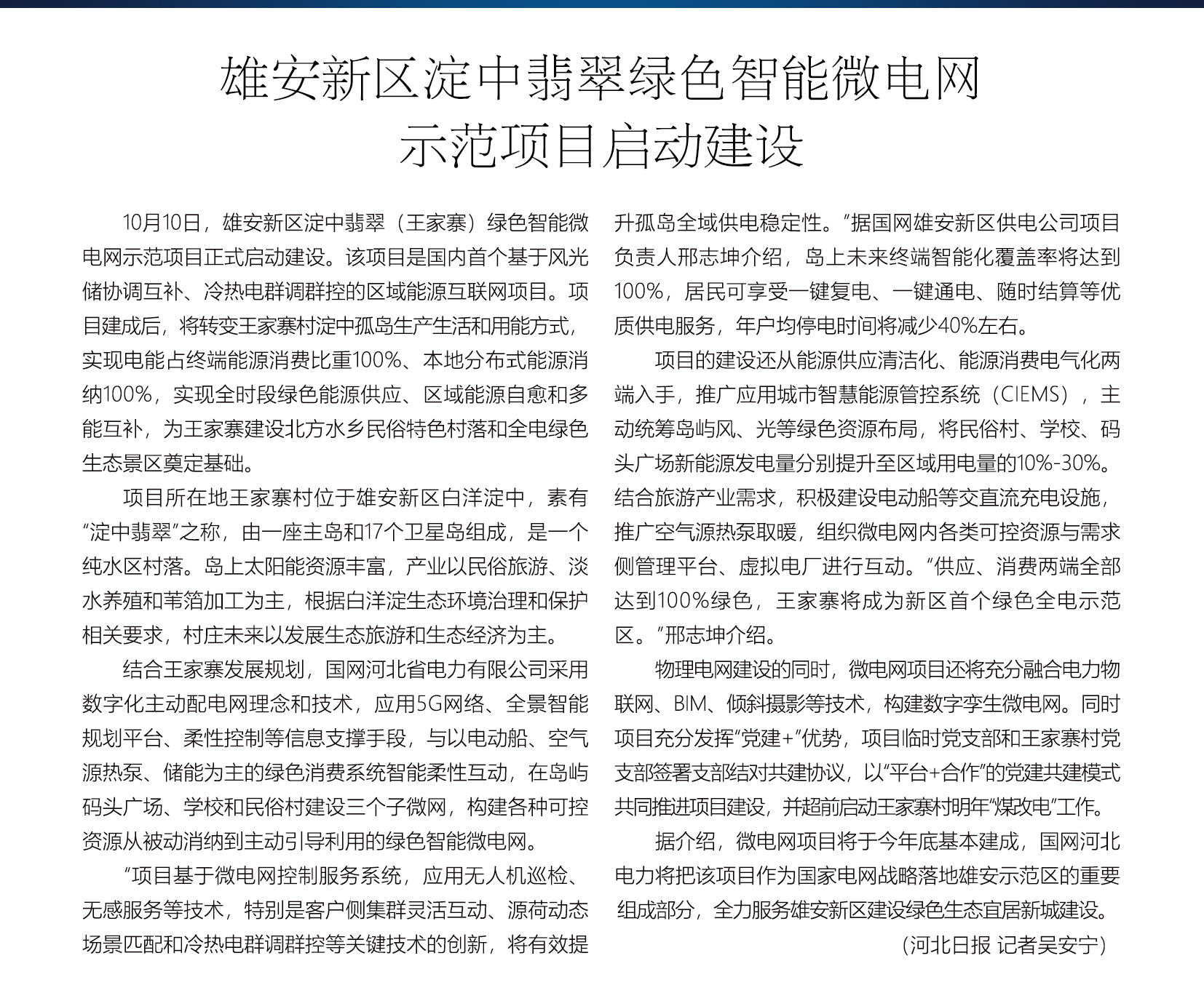 雄安新区淀中翡翠绿色智能微电网示范项目启动建设
