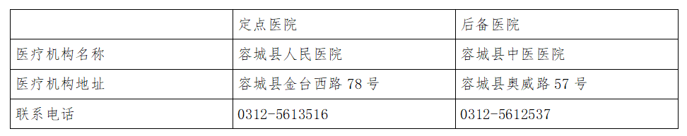 容城县新冠肺炎医疗救治定点医院、后备医院名单公示