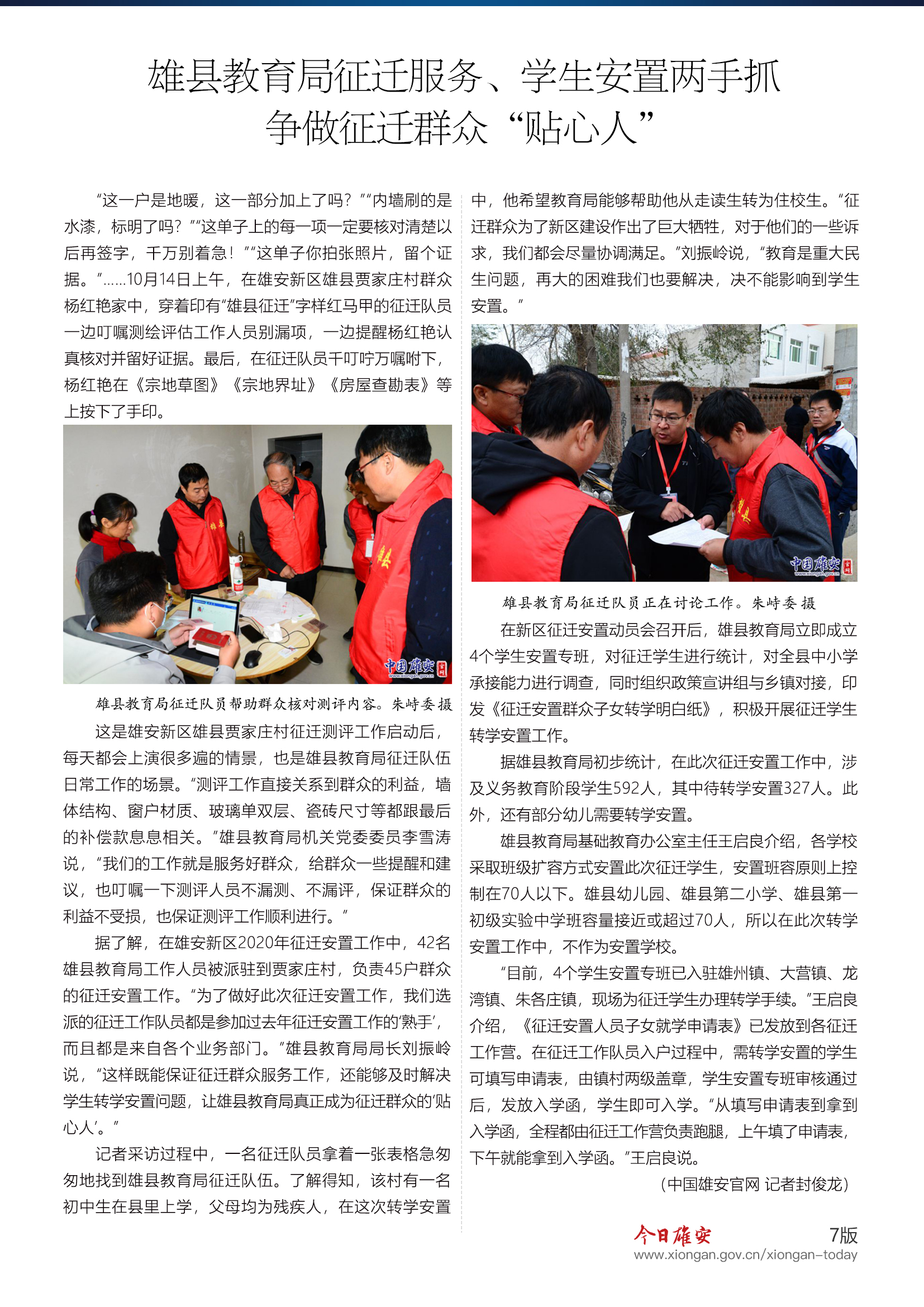 雄县教育局征迁服务、学生安置两手抓 争做征迁群众“贴心人”