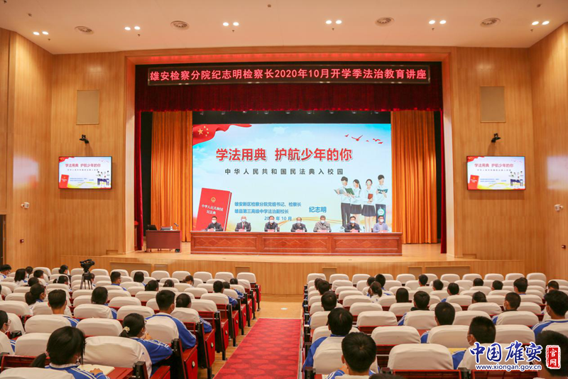 中国雄安官网10月21日电 为进一步宣传好民法典,让未成年人在民法典的保护下健康成长,10月15日下午,河北省人民检察院雄安新区分院党组书记、检察长纪志明来到雄县第三高级中学,以“学法用典 护航少年的你”为主题,为该校500余名师生带来了一场内容丰富、生动活泼的民法典讲座。
