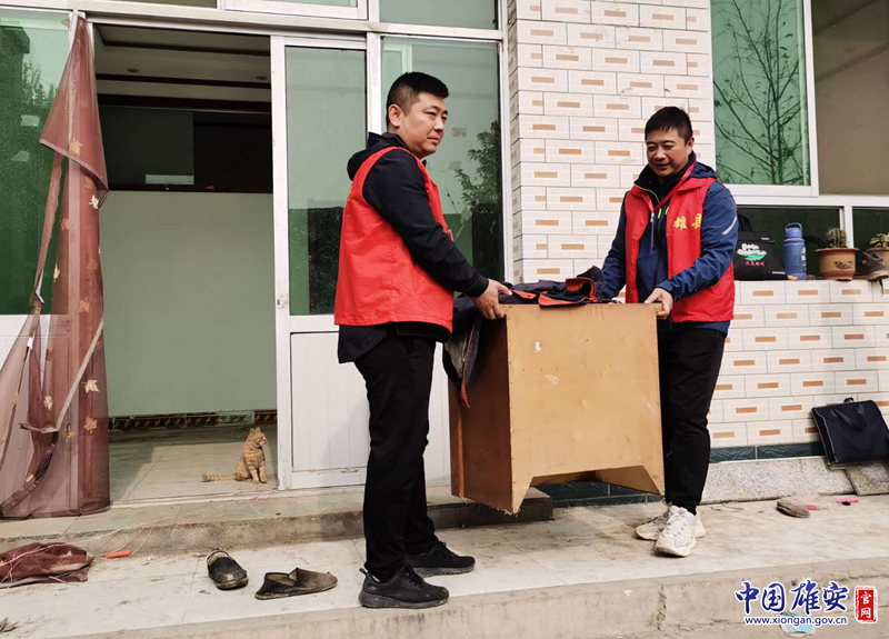 孙岩和工作队员帮张克英收拾东西。中国雄安官网记者封俊龙 摄
