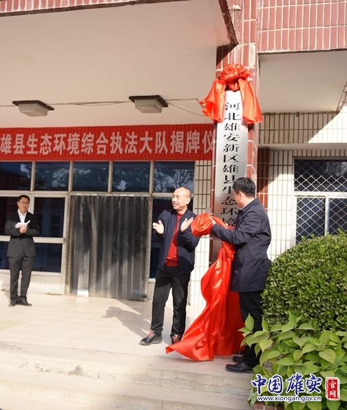 雄县生态环境综合执法大队揭牌仪式现场。雄安新区生态环境局供图