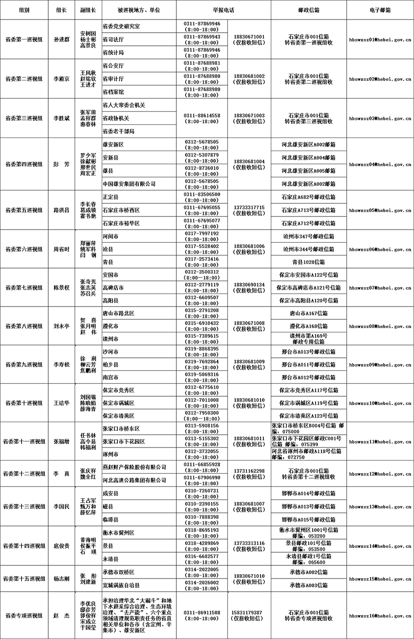 省委巡视组将在被巡视地方、单位现场巡视2个月左右。巡视期间设专门值班电话、联系手机、专门邮政信箱、电子邮箱和联系信箱。根据巡视工作条例规定,主要受理反映被巡视地方、单位党组织领导班子及其成员,下一级党组织主要负责人和重要岗位党员领导干部问题的来信来电来访,重点是关于违反政治纪律、组织纪律、廉洁纪律、群众纪律、工作纪律和生活纪律等方面的举报和反映。其他不属于巡视受理范围的信访问题,将按规定移交被巡视地方、单位和有关部门认真处理。(河北日报记者卢旭东)
