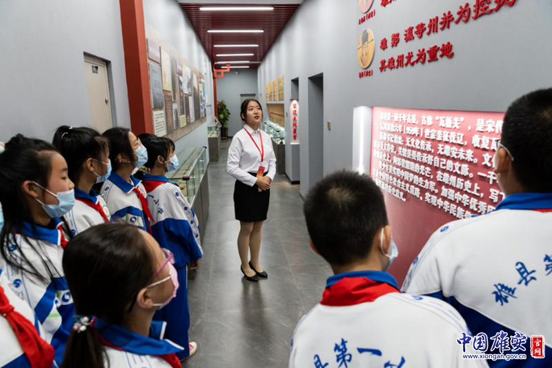 学生正在认真听讲解员讲解历史。中国雄安官网记者毛鹤然 摄