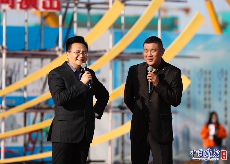 相声演员李伟建、付朝奎为雄安建设者表演相声《我爱雄安》。中国雄安官网记者高盟 摄