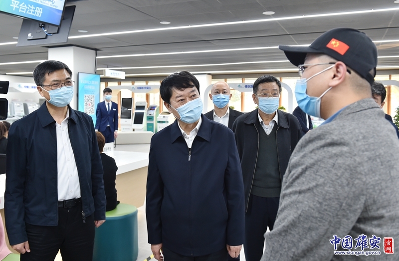 2020年11月10日,中央宣讲团成员,中央改革办分管日常工作的副主任,国家发展改革委党组副书记、副主任穆虹(左二)在雄安新区政务服务中心与办事群众交谈。河北日报记者赵海江 摄