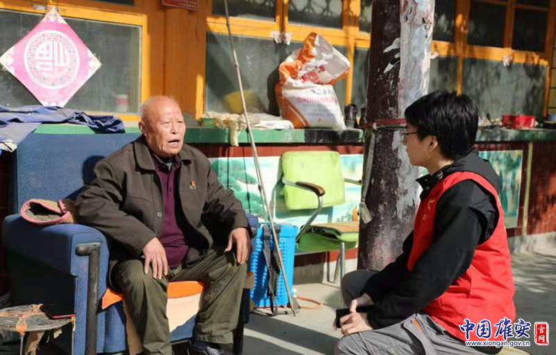 甄吉与容城县委宣传部驻村工作队员交谈。中国雄安官网发