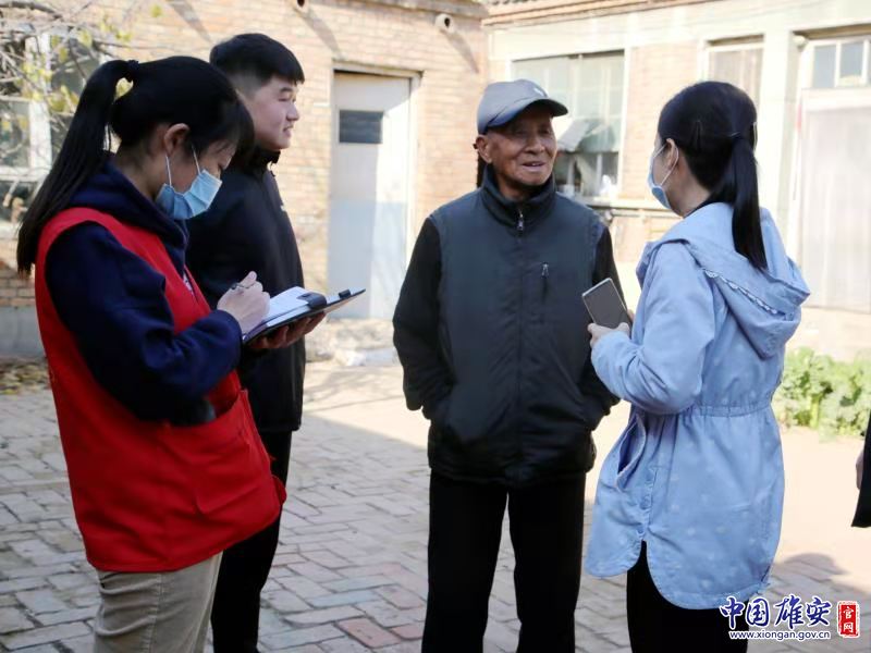 82岁的郭启明(右二)与驻村工作队员交谈。中国雄安官网发