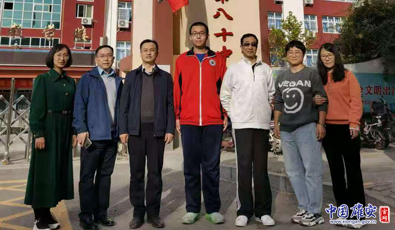 屈千翔和任课老师们合影。北京市第八十中学雄安校区供图