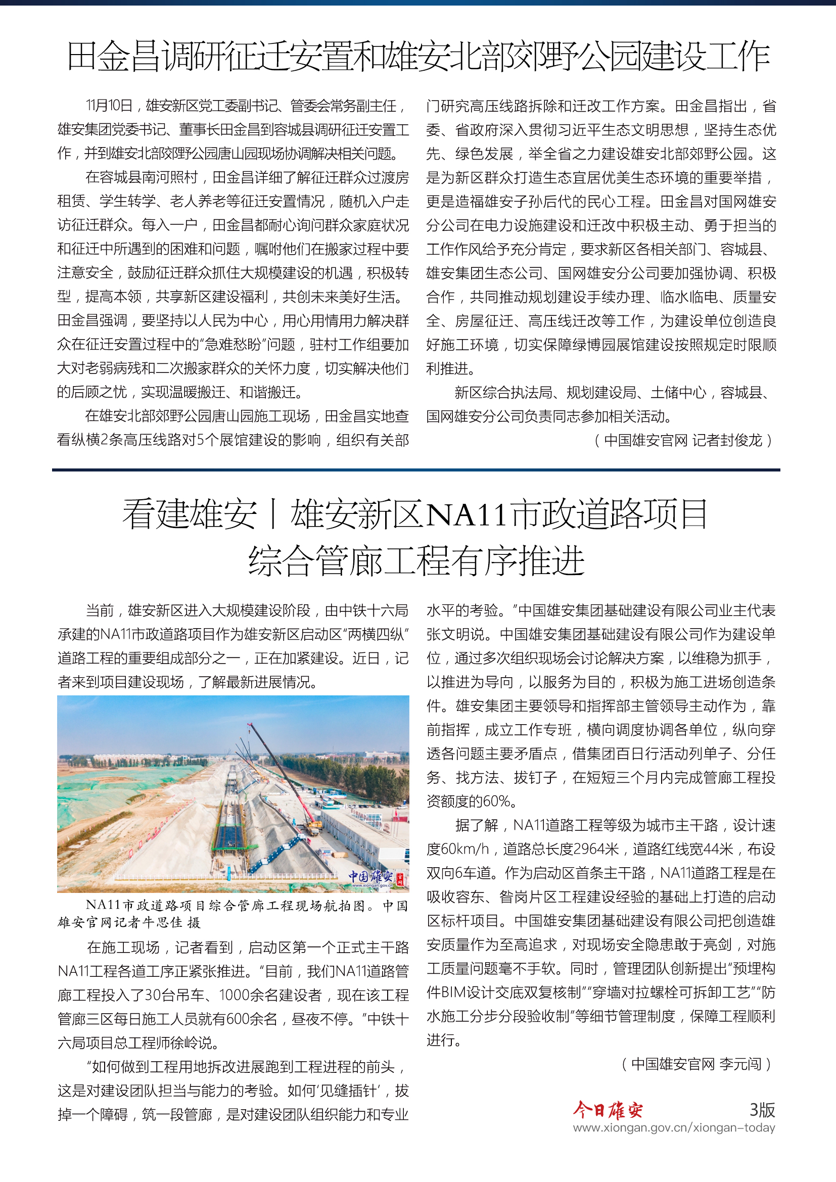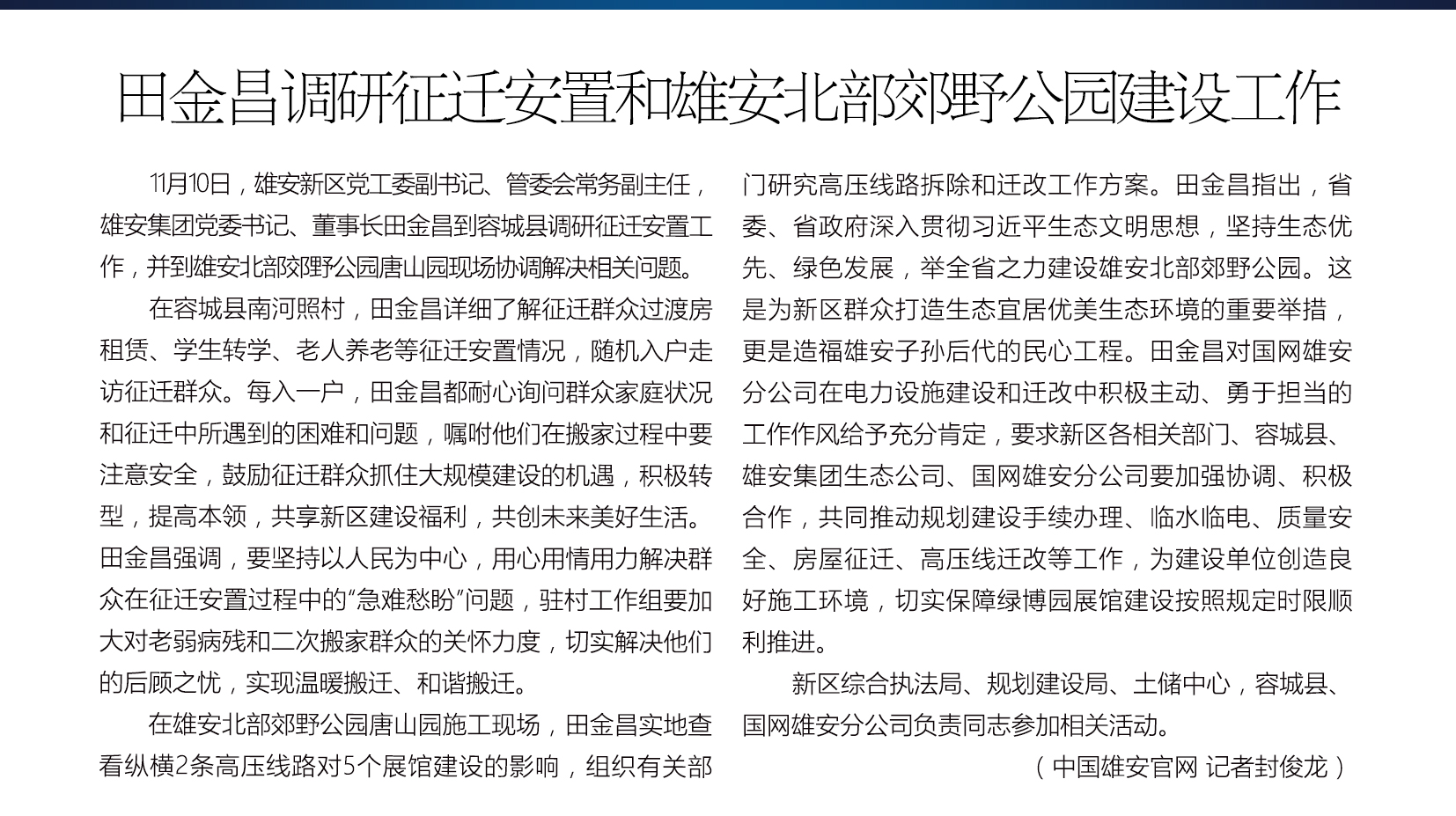 田金昌调研征迁安置和雄安北部郊野公园建设工作