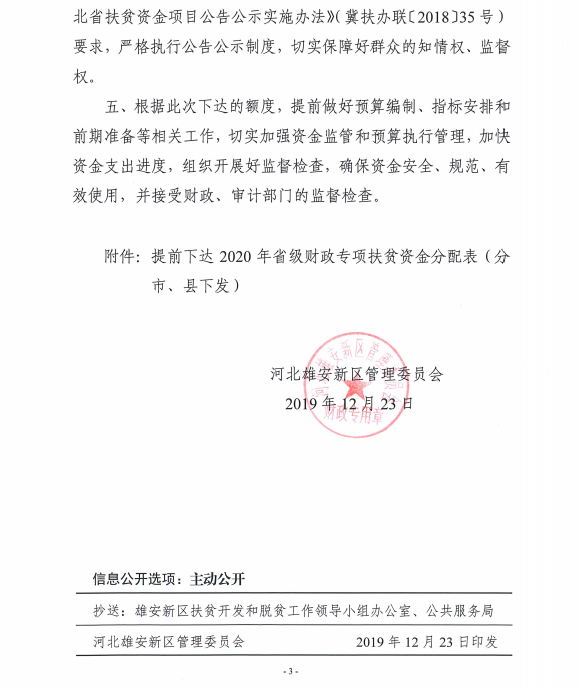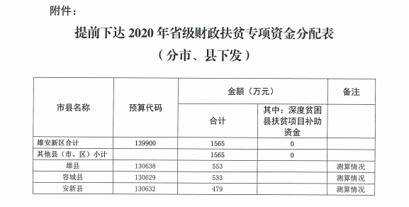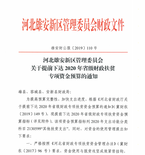 现将雄安新区提前下达2020年省级财政扶贫专项资金预算资金分配结果予以公告,如有异议,请向以下部门提出意见。