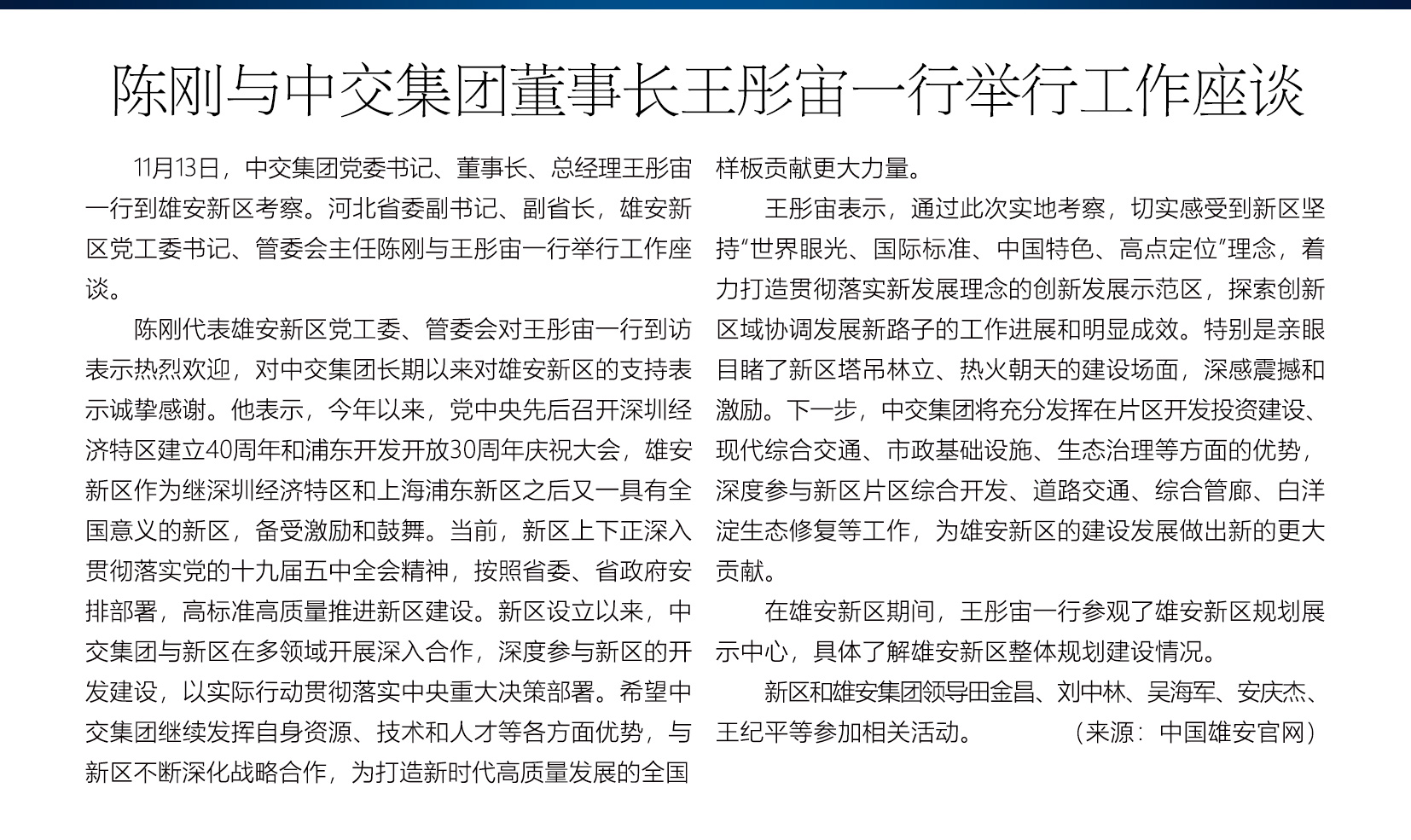 陈刚与中交集团董事长王彤宙一行举行工作座谈