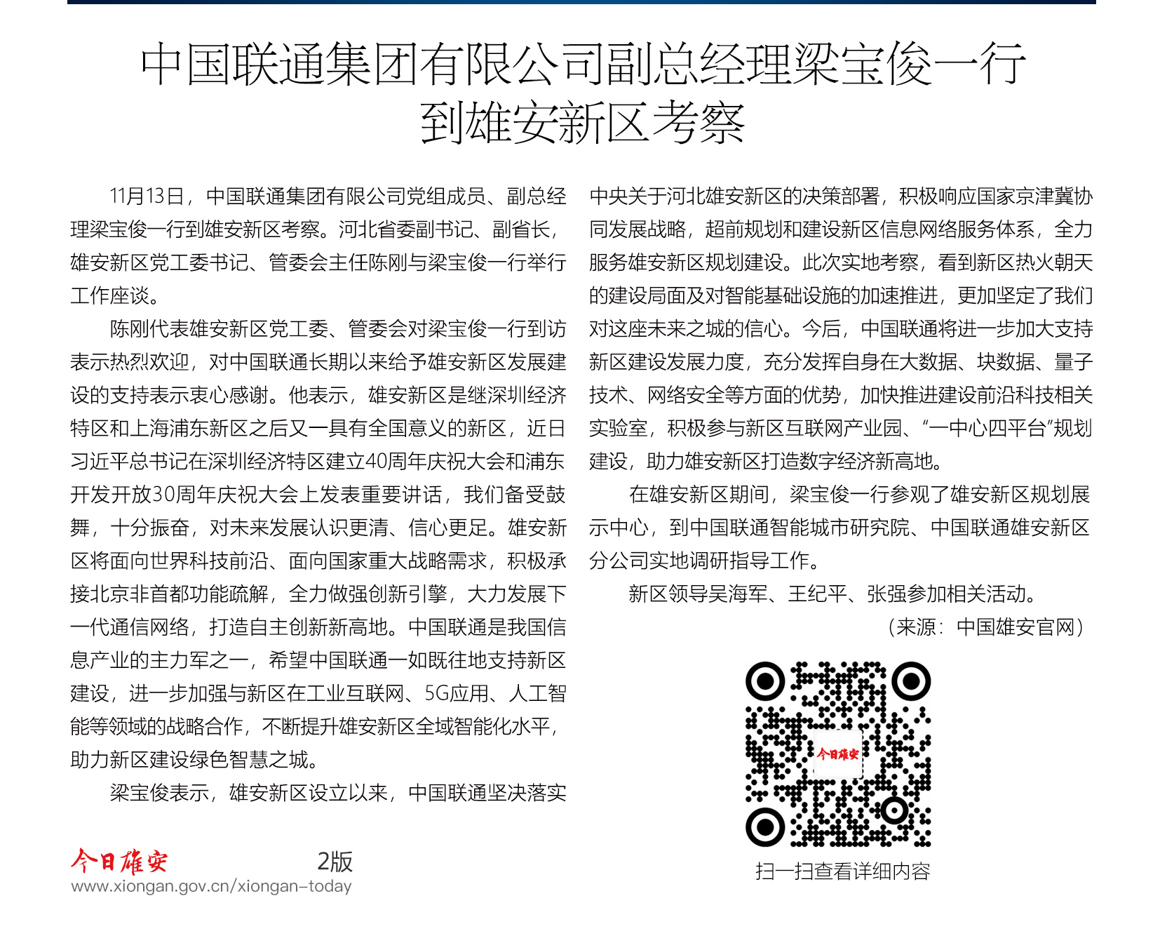 中国联通集团有限公司副总经理梁宝俊一行到雄安新区考察