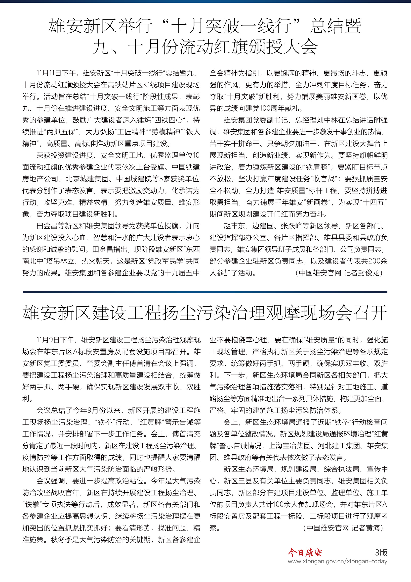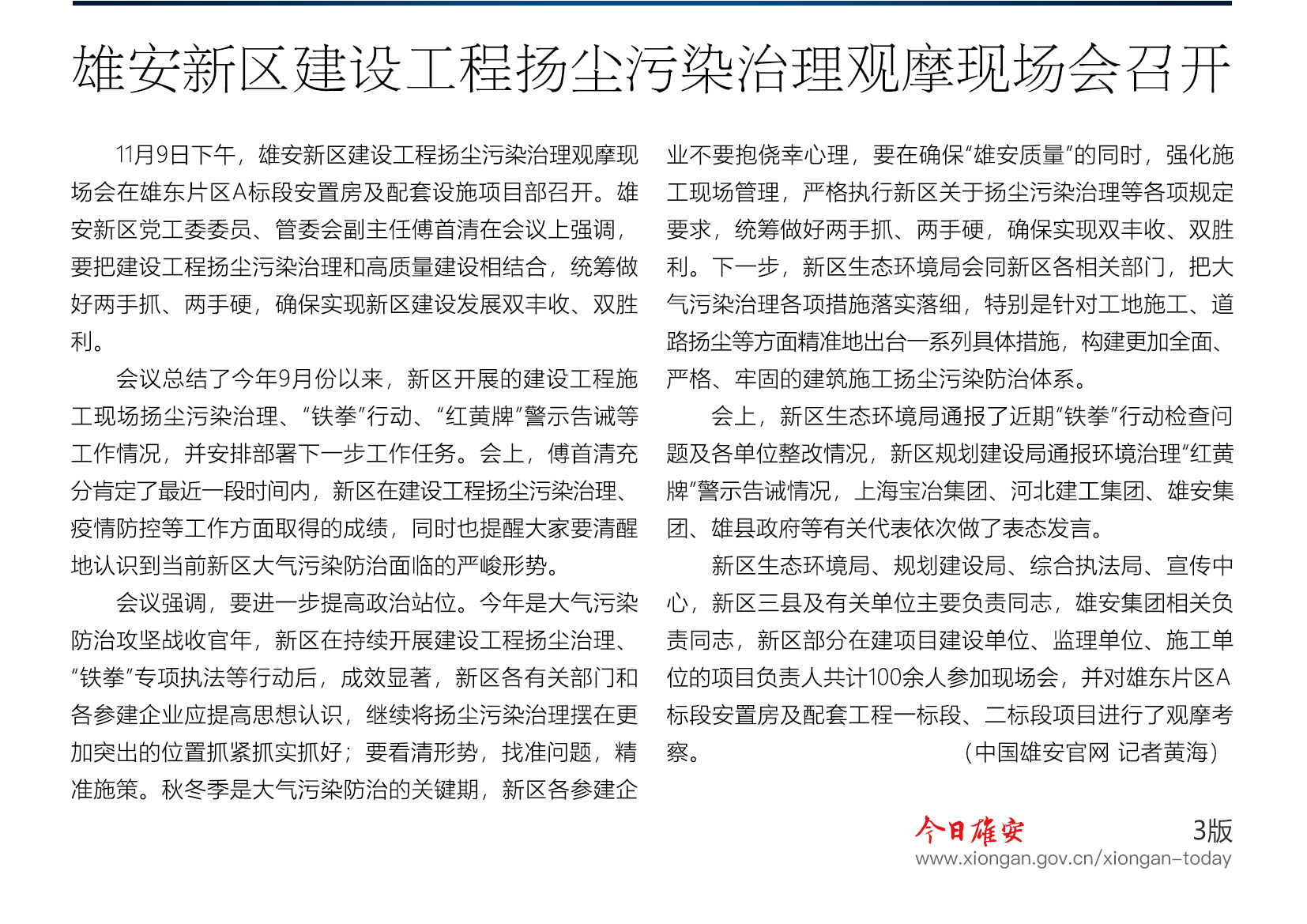 11月9日下午,雄安新区建设工程扬尘污染治理观摩现场会在雄东片区A标段安置房及配套设施项目部召开。