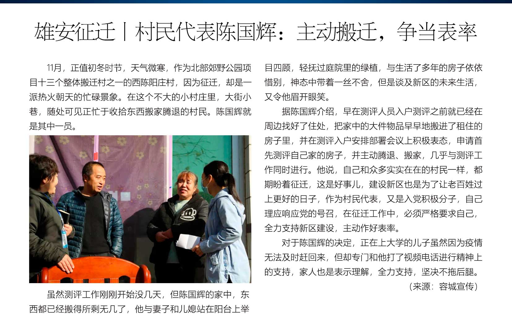 雄安征迁丨村民代表陈国辉:主动搬迁,争当表率