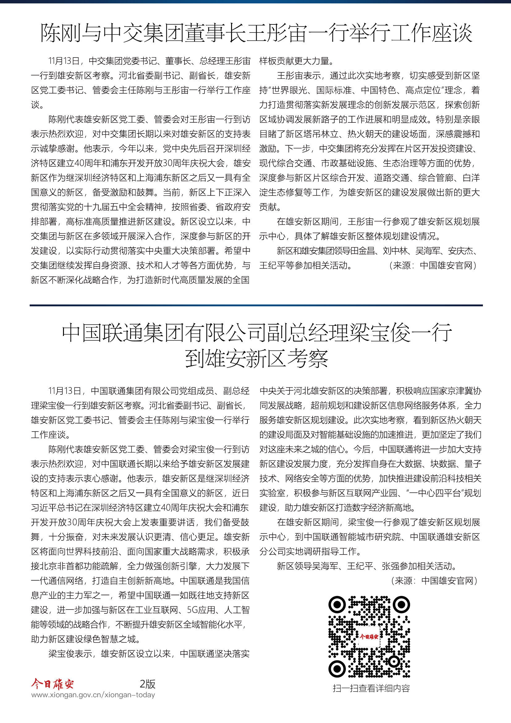 在雄安新区期间,梁宝俊一行参观了雄安新区规划展示中心,到中国联通智能城市研究院、中国联通雄安新区分公司实地调研指导工作。
