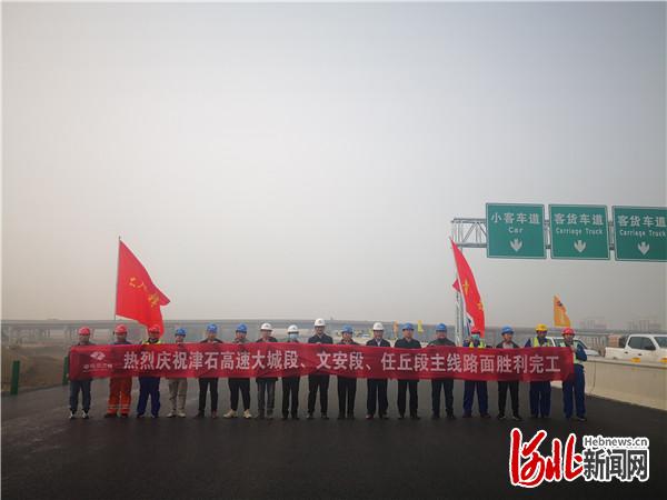 11月16日上午,随着天津至石家庄国家高速公路与京德高速交叉枢纽互通最后一公里的沥青路面摊铺完成,由中电建路桥集团有限公司津石高速公路项目河北高速公路总承包部路面JSLM1经理部承建的津石高速任丘段已全面完工,标志着天津至石家庄国家高速公路大城段、文安段,任丘段、安国段和定州段共计104.82公里已经胜利完成主线路面全部贯通。这是一个激动人心的时刻,站在高处极目眺望,天津至石家庄国家高速公路如同一条气势磅礴的伟岸巨龙正在燕赵大地徐徐升起,又像是一条璀璨的纽带,成为连接天津市、雄安新区和石家庄市的一道靓丽的风景。