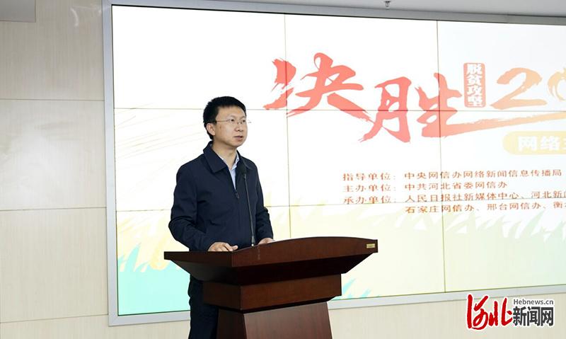 11月18日,“决胜2020”网络主题活动北线采访在石家庄正式启动。图为中共河北省委网信办副主任熊厚致辞。记者周国梁 摄