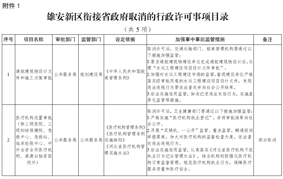 附件:1.雄安新区衔接省政府取消的行政许可事项目录