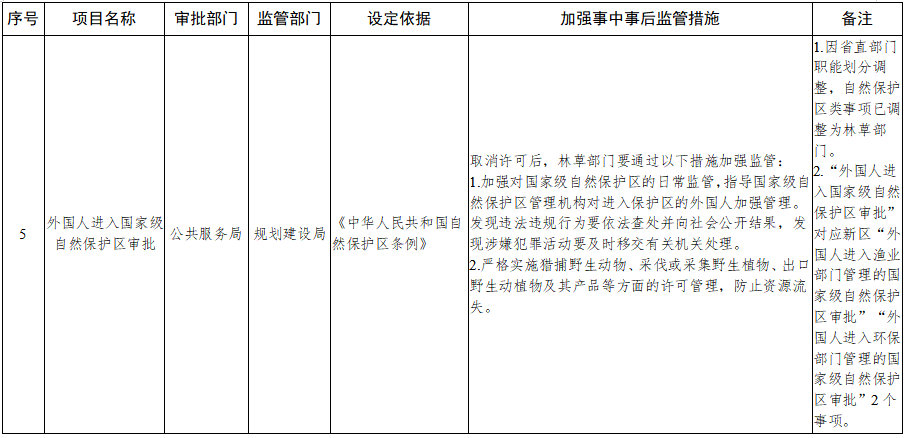 三、强化事中事后监管。新区有关部门要结合新区审管分离管理体制的实际,严格落实近期省直有关部门、国家部委公布的事中事后监管细则。取消审批对应的监管部门要强化监管主体责任,与审批部门建立信息双向反馈机制,确保审批、监管无缝对接。