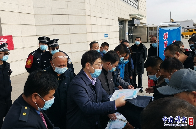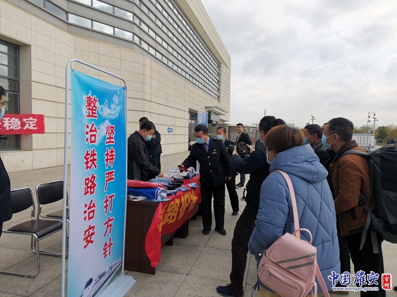 活动现场,工作人员向过往旅客发放宣传单。中国雄安官网发