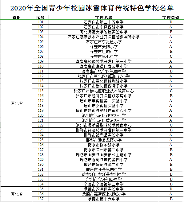 日前,教育部公布2020年全国青少年校园篮球、排球、冰雪体育传统特色学校等名单,其中河北37所冰雪体育传统特色学校、115所北京2022年冬奥会和冬残奥会奥林匹克教育示范学校。