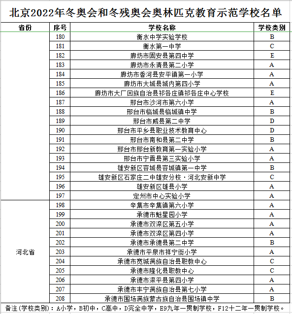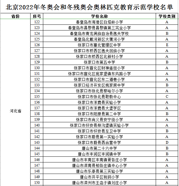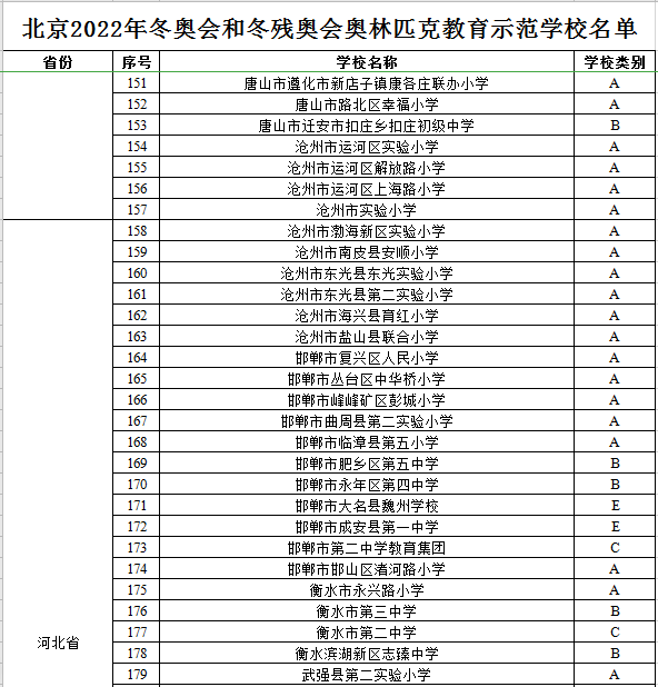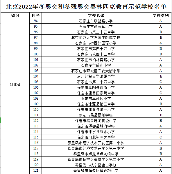 北京2022年冬奥会和冬残奥会奥林匹克教育示范学校名单如下: