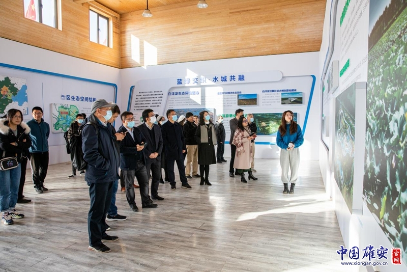 在雄安新区考察期间,代表团参观了雄安新区规划展示中心、“千年秀林”驿站和白洋淀木栈道,并现场调研了雄安水准原点建设现场。