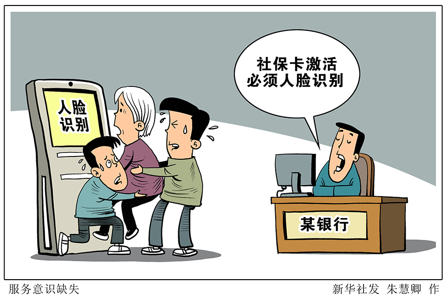 湖北广水一名行动不便的94岁老人为了激活社保卡,被亲属抬到银行、抱起进行人脸识别的视频,近日在网上广为传播。银发老人被抱起时,瘦弱而困窘的身影,刺痛人心。社保卡本是便民利民之卡,如此激活,相关部门及单位应当反思。