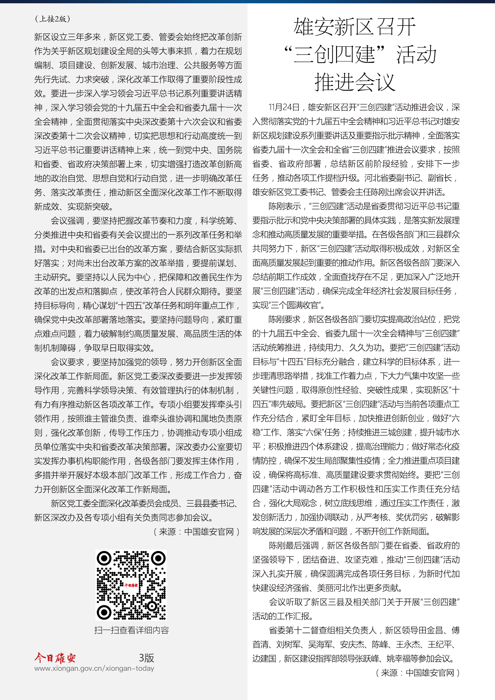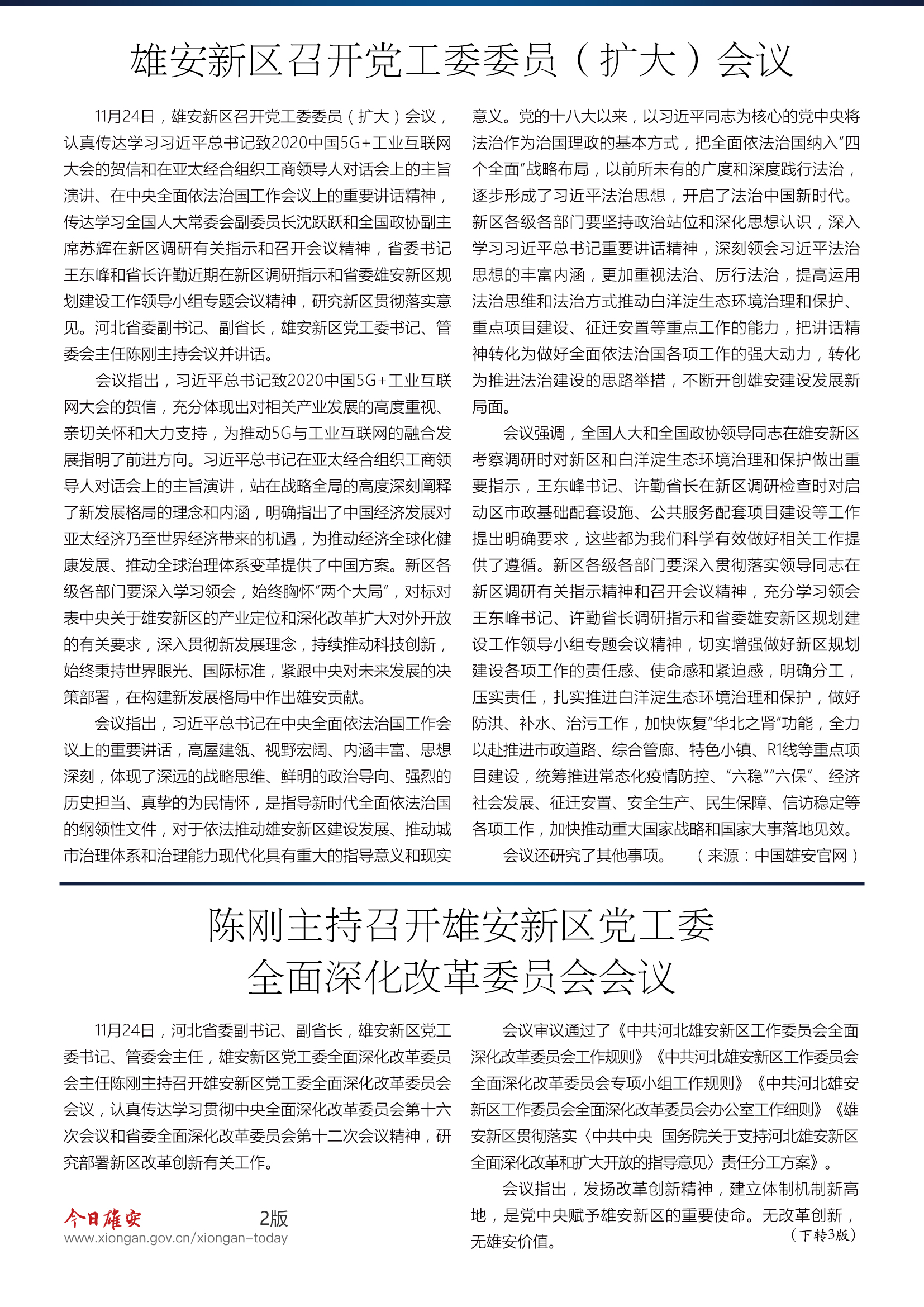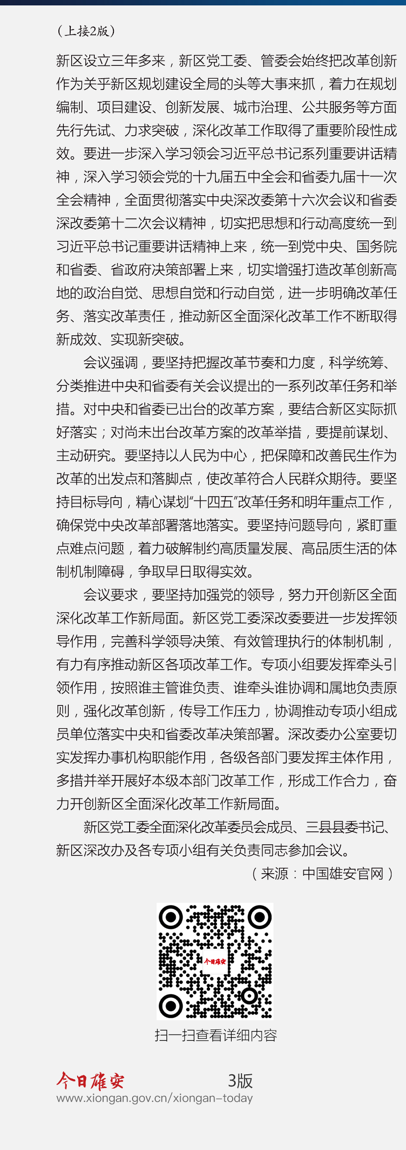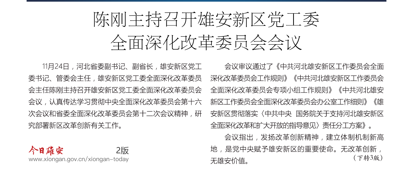 陈刚主持召开雄安新区党工委全面深化改革委员会会议