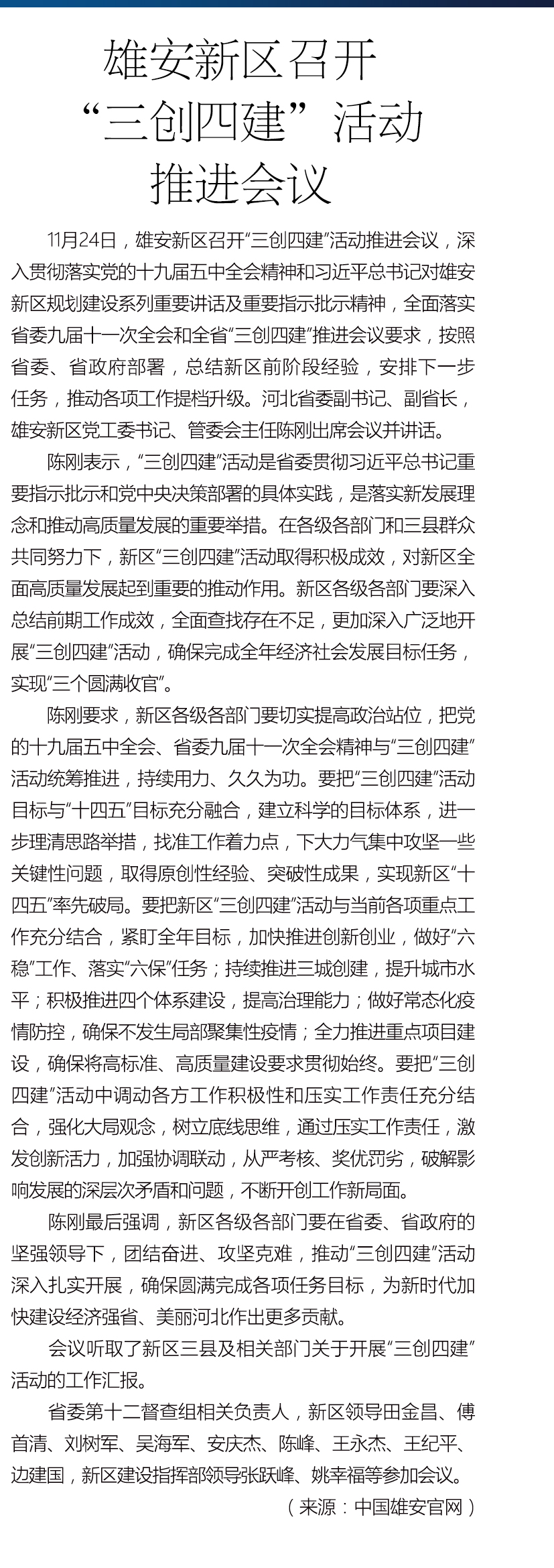 坚定不移强作风 凝心聚力抓落实 奋力开创雄安新区高质量发展新局面——专访省委副书记、副省长,雄安新区党工委书记、管委会主任陈刚