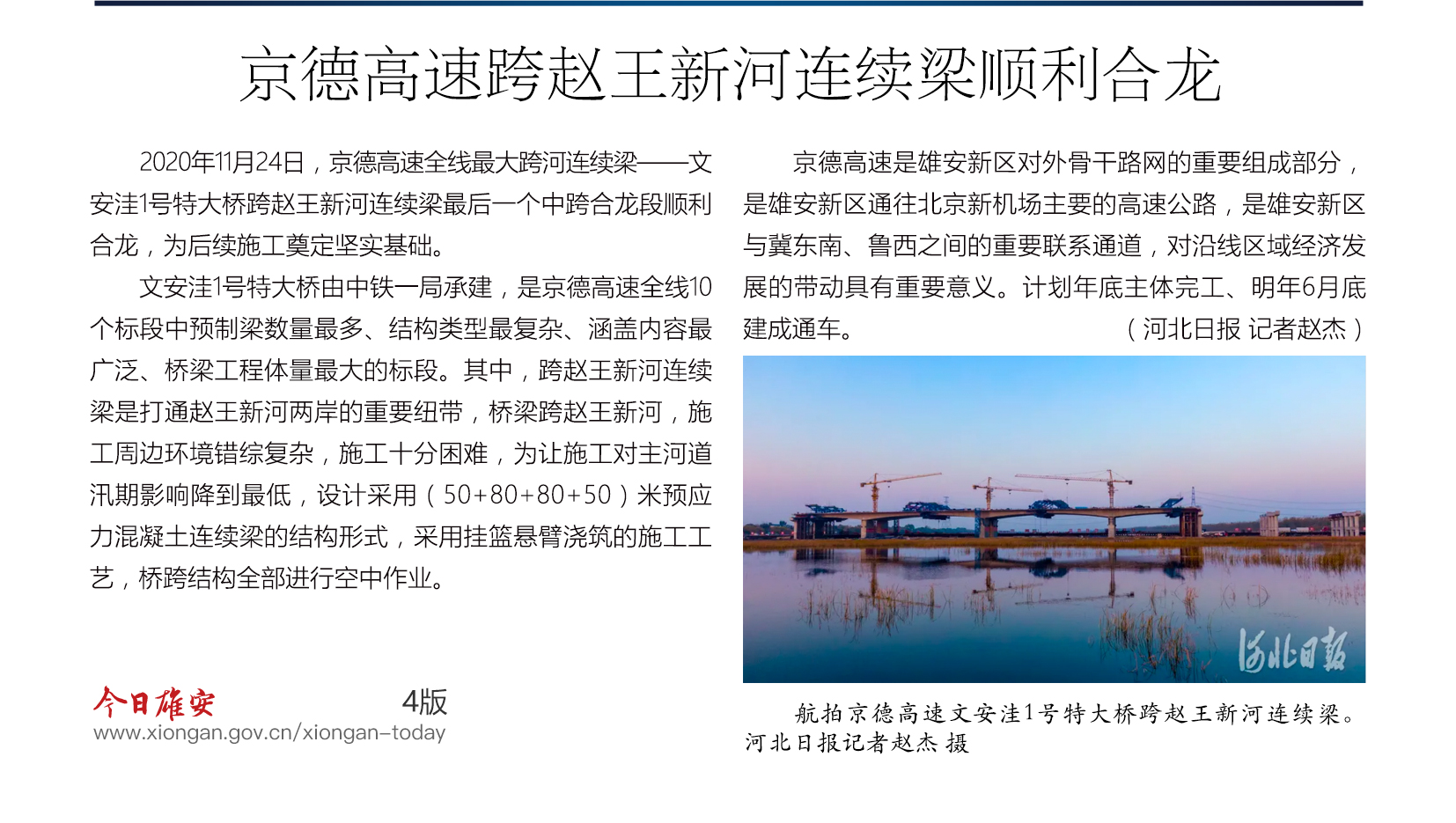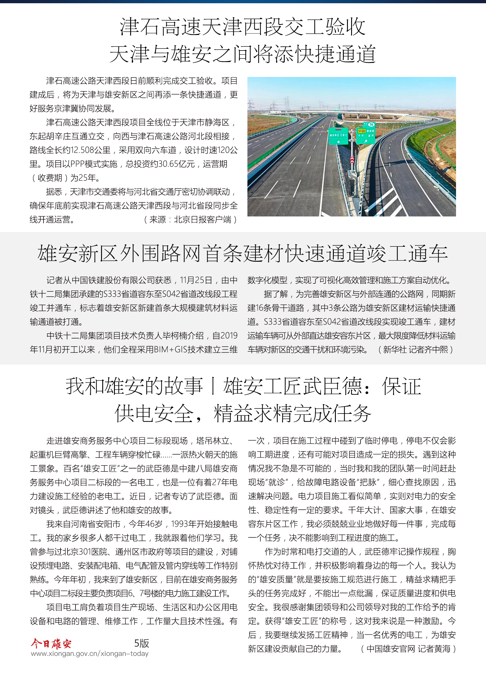 项目建成后,将为天津与雄安新区之间再添一条快捷通道,更好服务京津冀协同发展。