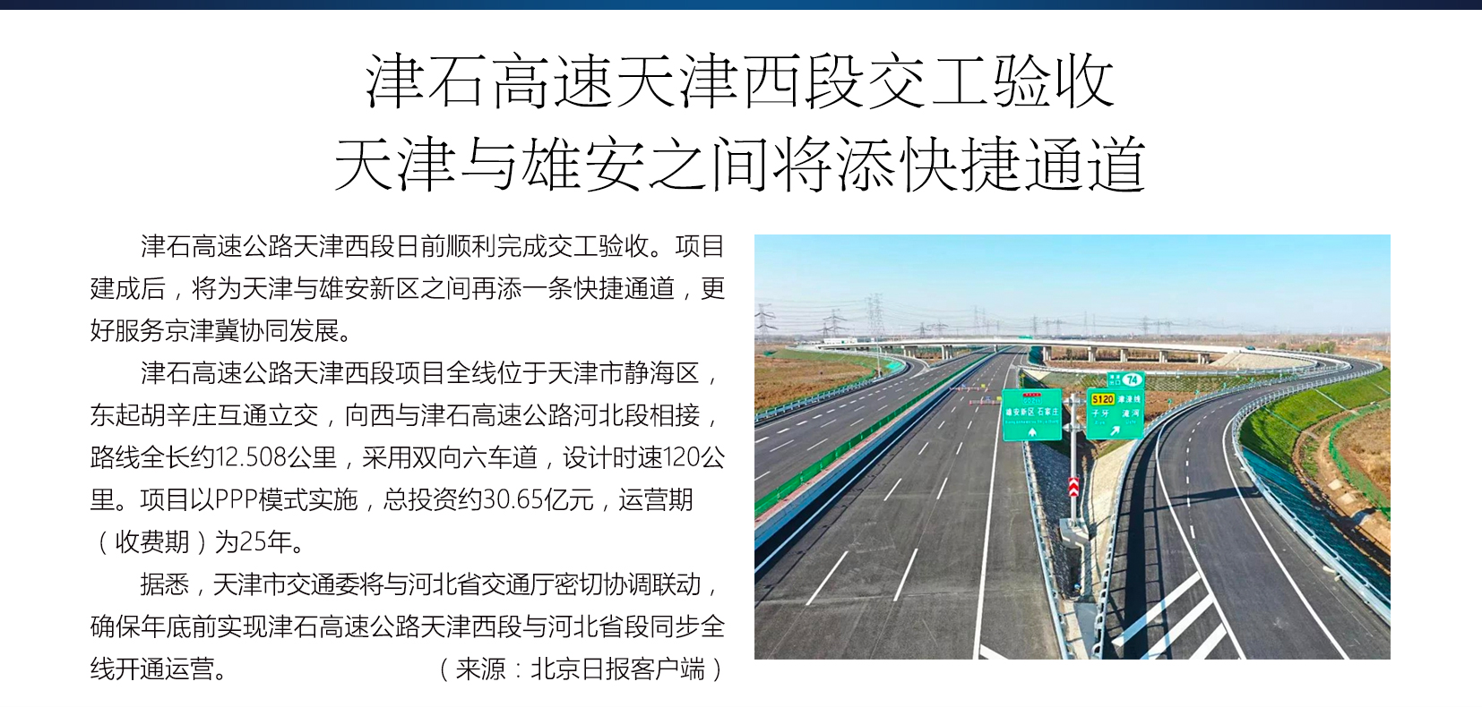津石高速天津西段交工验收!天津与雄安之间将添快捷通道