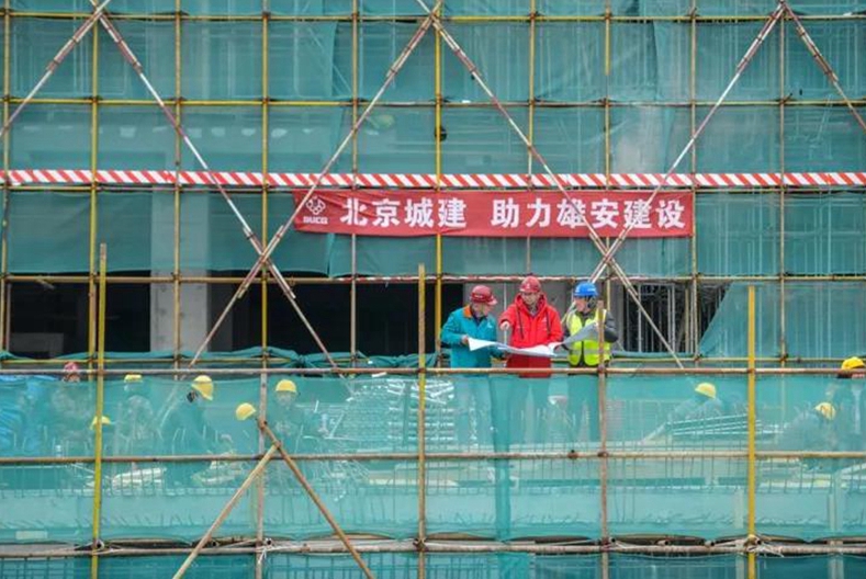 “100天的时间,建成6.1万平方米的商业配套,还是在四周几乎没有可利用空间、进出场道路随时变更的施工环境下,我们内部称这是场‘上甘岭战役’。”以指挥长身份盯在现场的土木工程部副经理付勇攀说。参与完北京小汤山医院改扩建工程后,付勇攀直奔雄安新区,“刚别小汤山,再战四角楼”。