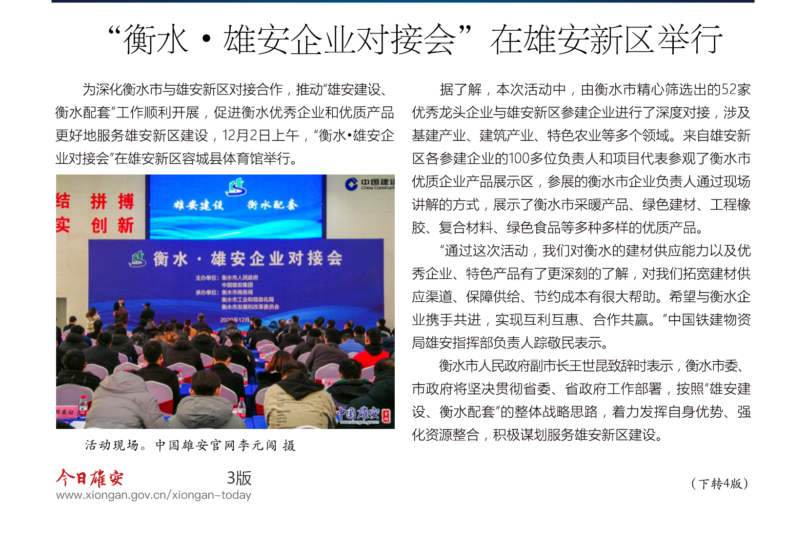 “衡水•雄安企业对接会”在雄安新区举行