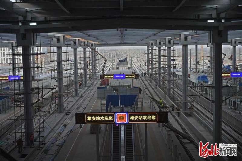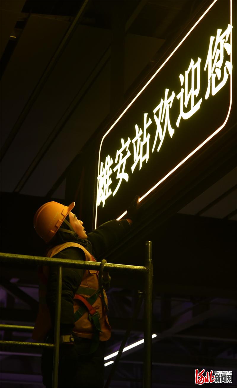 2020年12月1日,雄安站站台亮起了“雄安站欢迎您”指示牌。