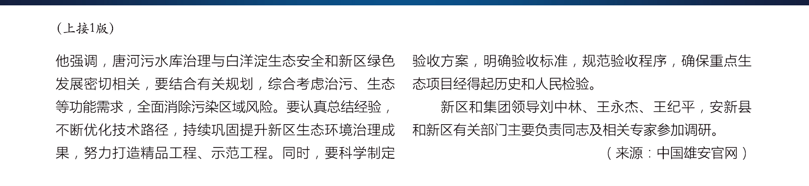 持续升级加力做好白洋淀生态环境保护和治理各项工作。