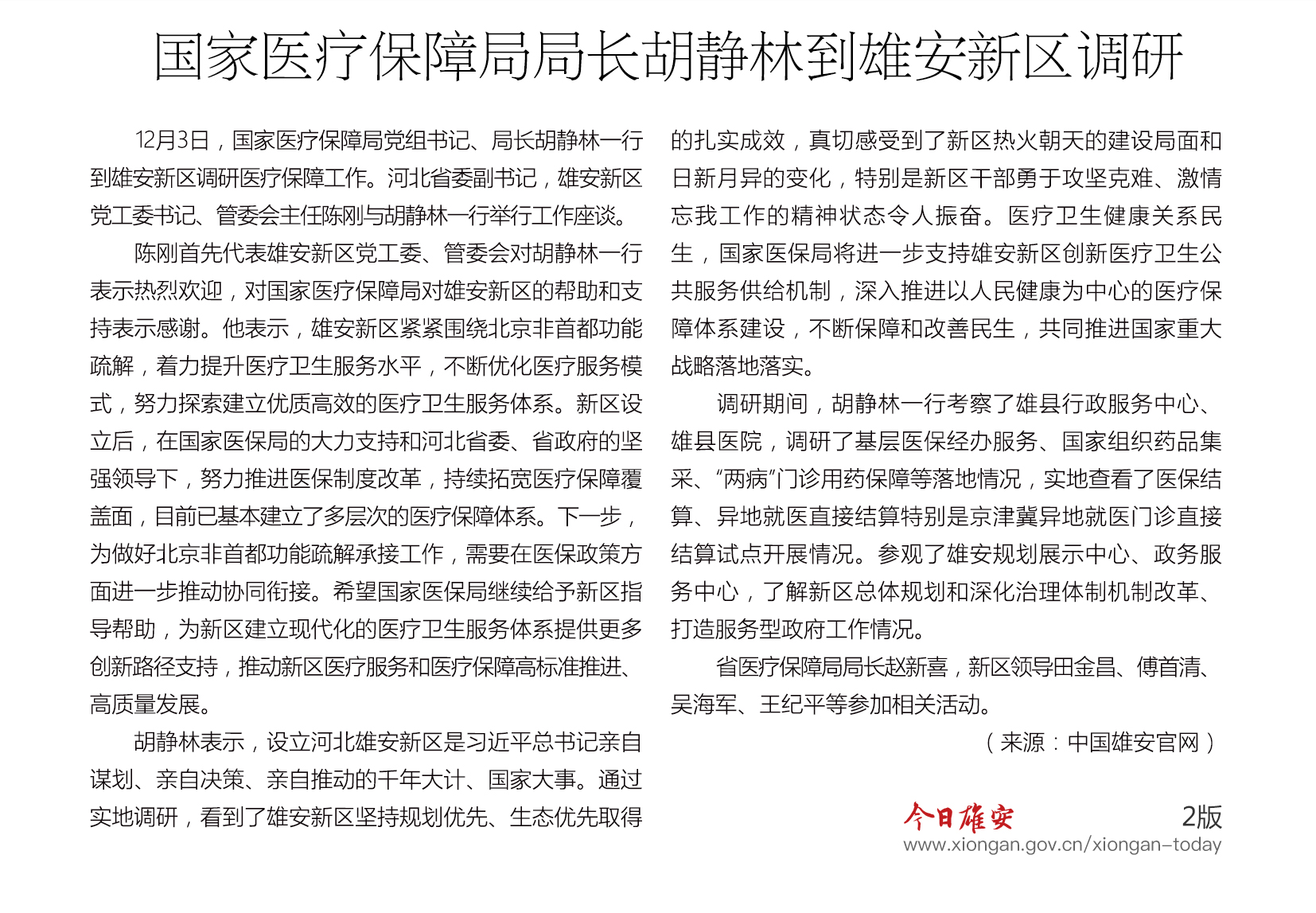 推动新区医疗服务和医疗保障高标准推进、高质量发展。