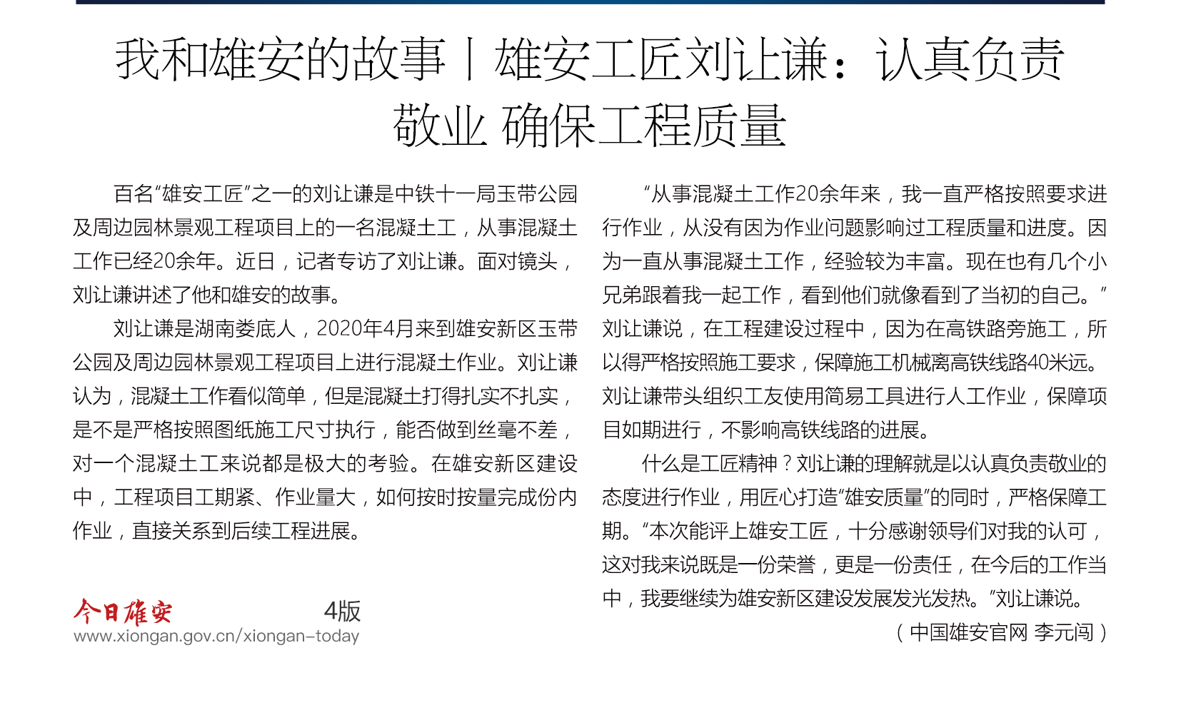 我和雄安的故事㉜丨雄安工匠刘让谦:认真负责敬业 确保工程质量