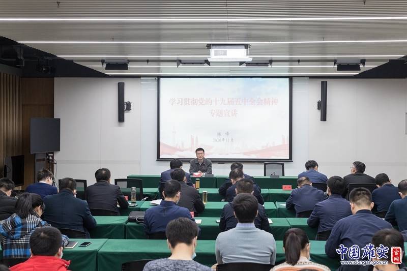 近日,雄安新区党工委委员、管委会副主任陈峰在雄安市民服务中心作学习贯彻党的十九届五中全会精神专题宣讲。图为宣讲会现场。中国雄安官网记者李鑫 摄