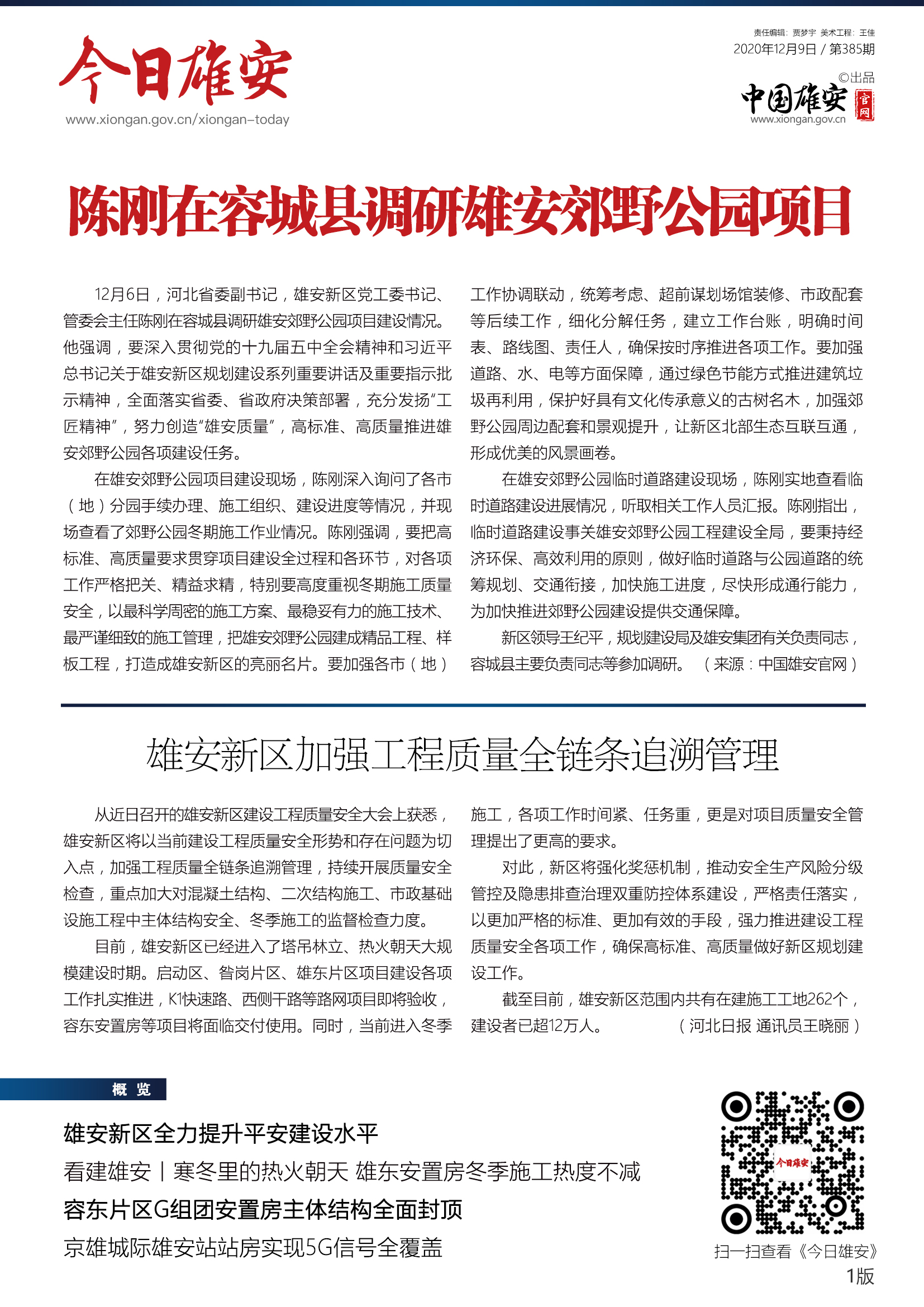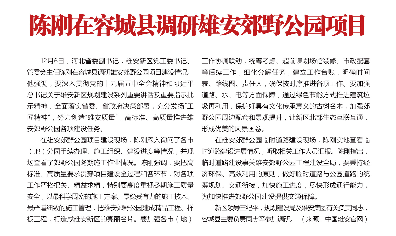 充分发扬“工匠精神”努力创造“雄安质量”,高标准、高质量推进雄安郊野公园建设。