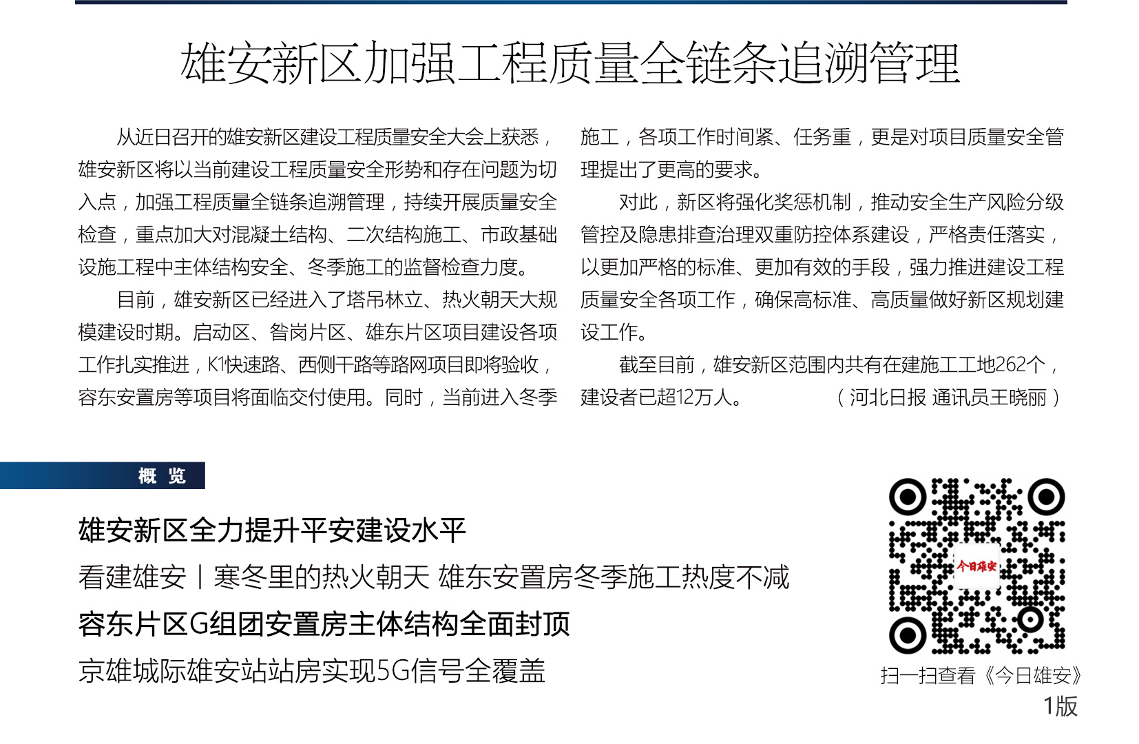 截至目前,雄安新区范围内共有在建施工工地262个,建设者已超12万人。