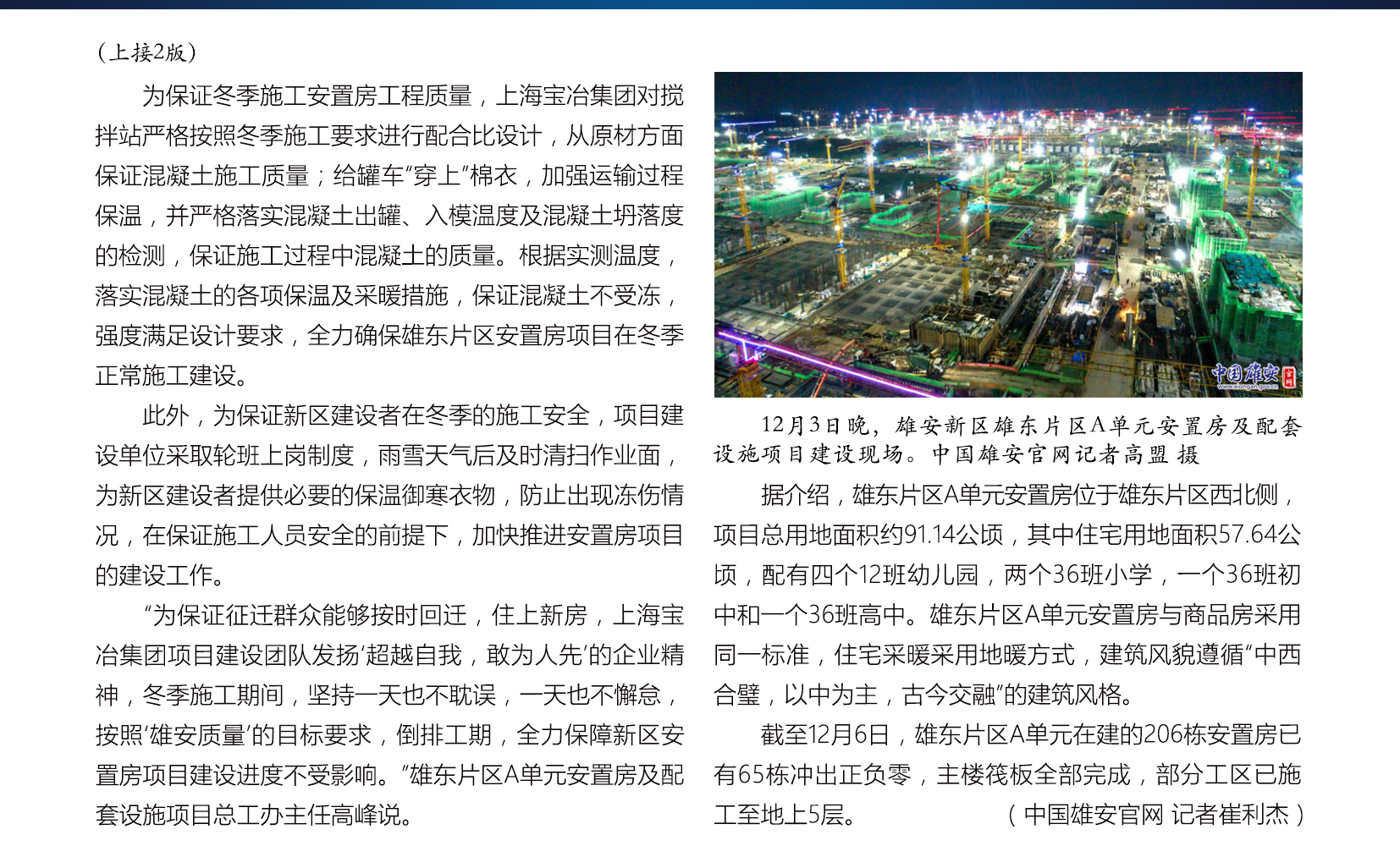 雄安新区建设者们冒着严寒,克服冬季施工面临的多重困难,高标准、高质量推进安置房项目建设。