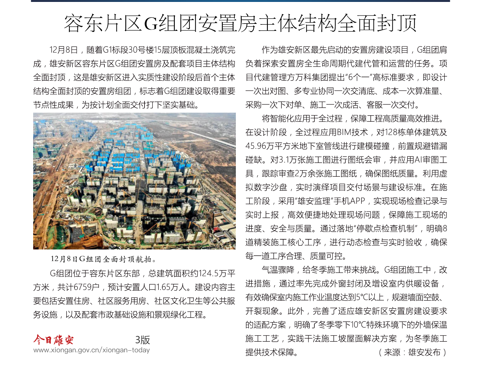 看建雄安丨雄安容东片区G组团G3标段安置房实现主体结构封顶